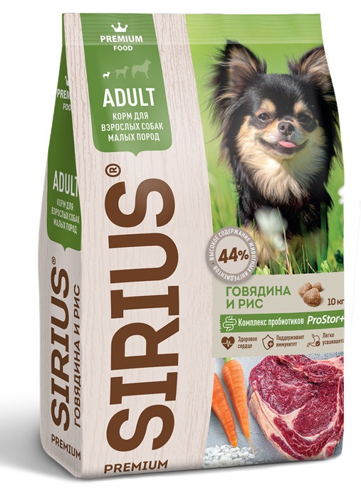 SIRIUS - сухой корм премиум класса для полноценного ежедневного рациона взрослых собак малых пород. Высокое содержание мясных ингредиентов обеспечивает оптимальный уровень белка и укрепляет мышцы. Баланс витаминов и комплекса пробиотиков 4-го поколения PROSTOR+ нормализует пищеварение и укрепляет иммунитет. Омега 3 и Омега 6 способствуют поддержанию здоровья сердца, мозга, нервной системы, здоровья кожи и красоты шерсти.