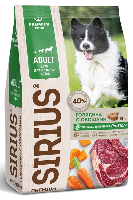 Sirius Говядина с овощами - полноценный ежедневный рацион для взрослых собак.