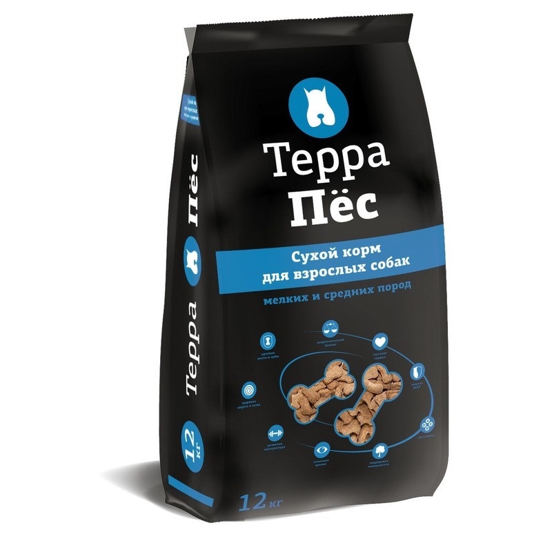 Терра Пёс сухой корм для взрослых собак мелких и средних пород с мясом и злаками - 12 кг
