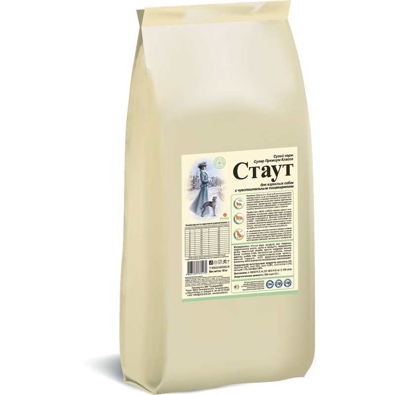 Стаут сухой корм для взрослых собак всех пород с чувствительным пищеварением с мясом и злаками - 15 кг
