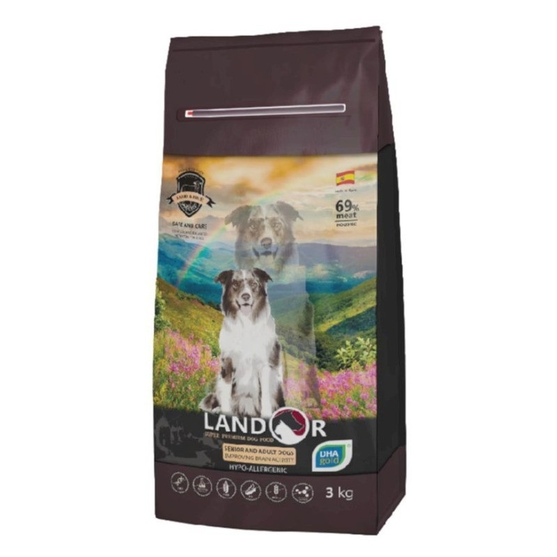 Landor сухой корм для пожилых и взрослых собак всех пород с функцией улучшения мозговой деятельности, с уткой и рисом - 3 кг