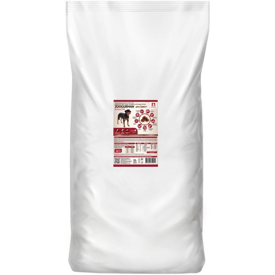 Зоогурман Active Life для взрослых собак с индейкой - 20 кг