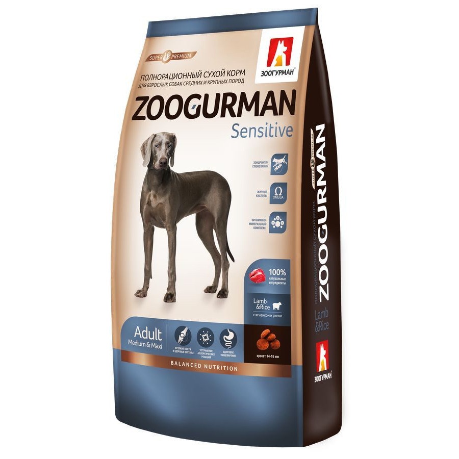 Зоогурман сухой корм для взрослых собак с ягненком и рисом - 12 кг