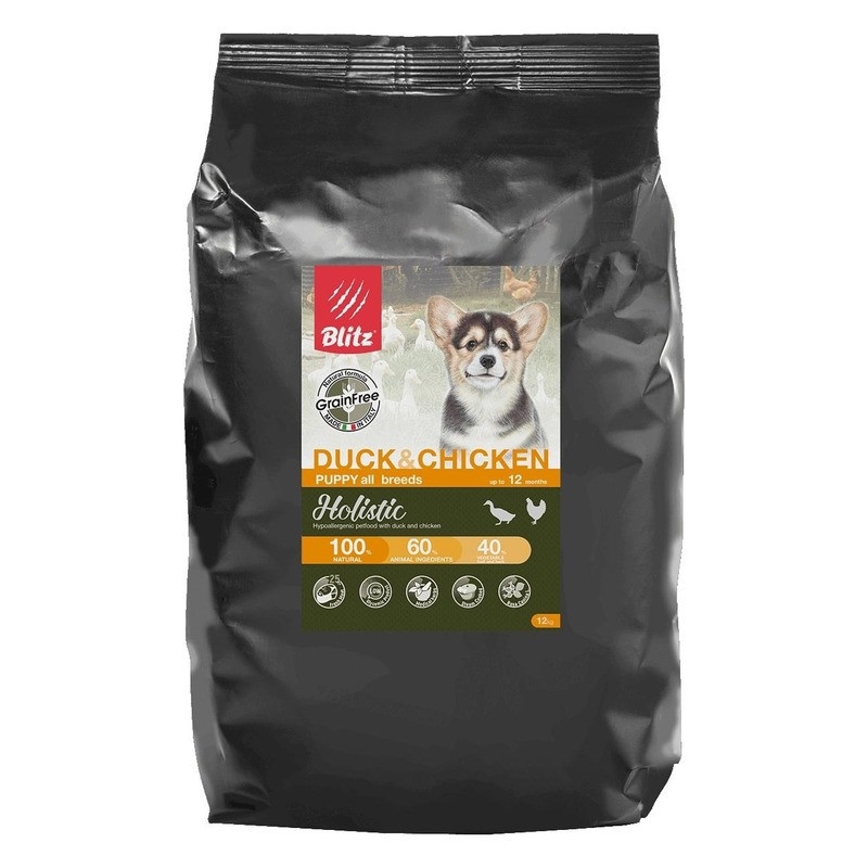Сухой беззерновой корм Blitz Puppy для щенков с уткой и цыпленком - 12 кг