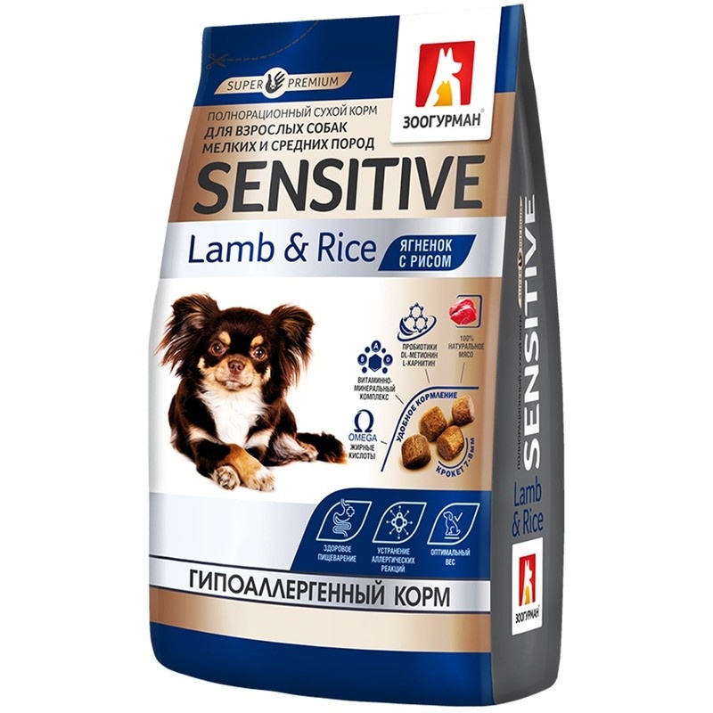 Сухой корм Зоогурман для взрослых собак мелких и средних пород с ягненком и рисом - 1,2 кг