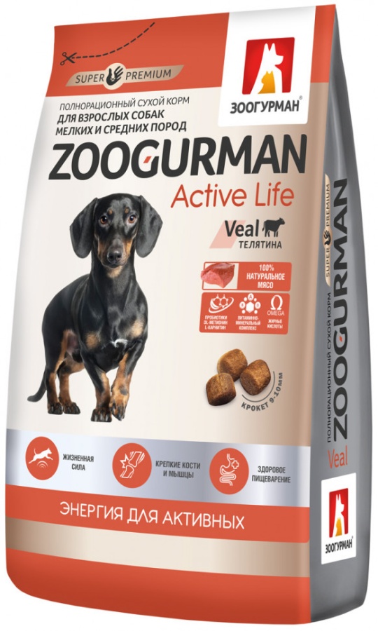 Сухой корм Зоогурман для взрослых собак мелких и средних пород с телятиной и языком - 10 кг