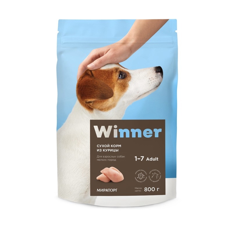 Сухой корм Winner для взрослых собак мелких пород с курицей - 800 г