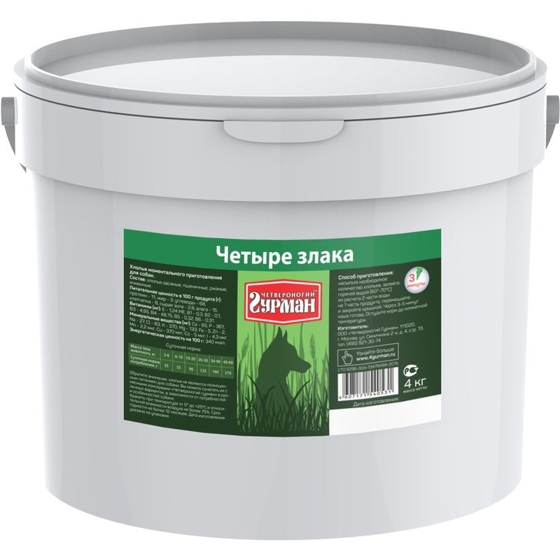 Моментальные каши «Четвероногий гурман» для собак – это злаковые хлопья, которые являются бесценным источником углеводов и необходимым элементом полноценного рациона собаки. Обработанные особым способом злаки сохраняют все полезные вещества и позволяют за считанные минуты приготовить вкусный и натуральный обед. Каши не требуют варки – сухие хлопья необходимо залить горячей водой и дать настояться – через 5 минут гарнир для полноценного обеда готов.