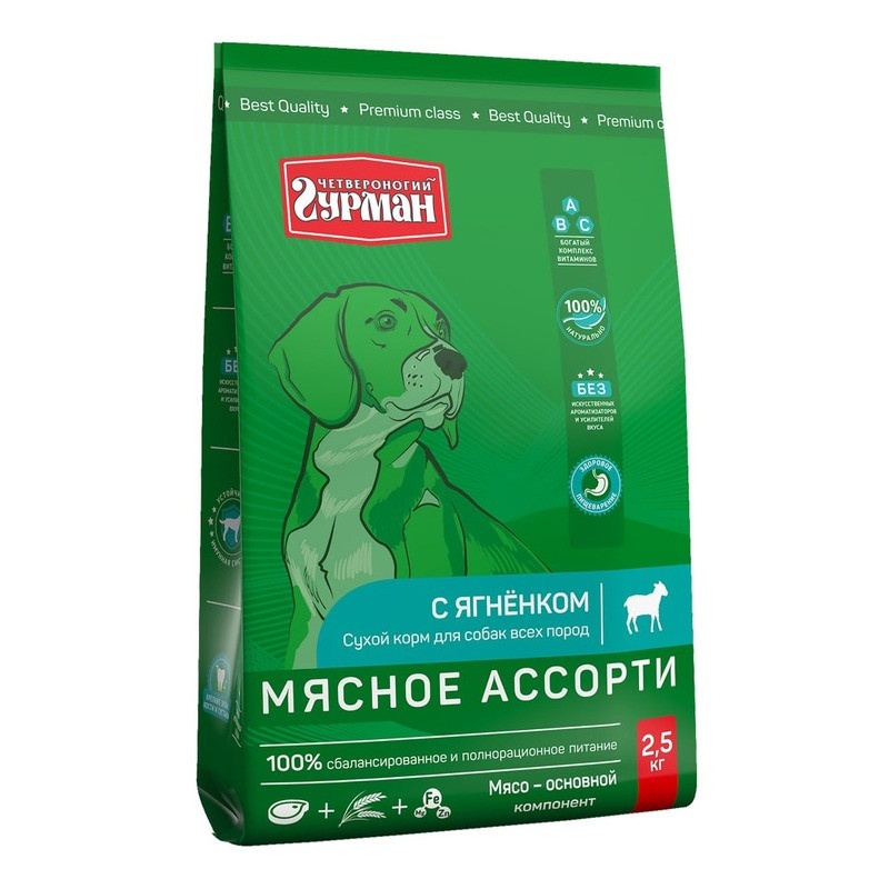 Сухой корм Четвероногий гурман Мясное ассорти для собак с ягненком 2.5 кг