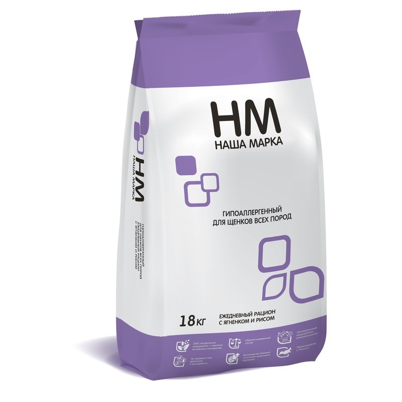 Наша Марка сухой гипоаллергенный корм для щенков всех пород с ягненком и рисом 18 кг