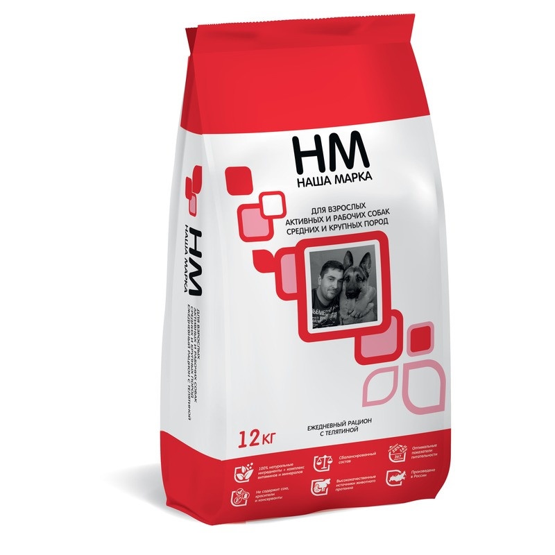 Наша Марка сухой корм для взрослых активных и рабочих собак средних и крупных пород с телятиной 12 кг