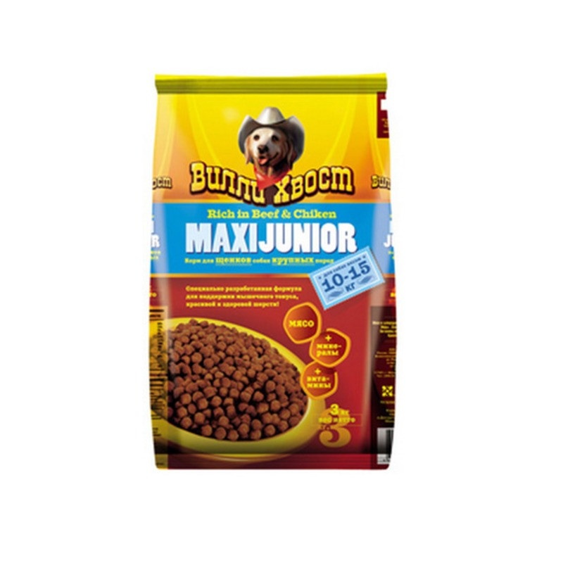Вилли Хвост сухой корм для щенков крупных пород - 3 кг