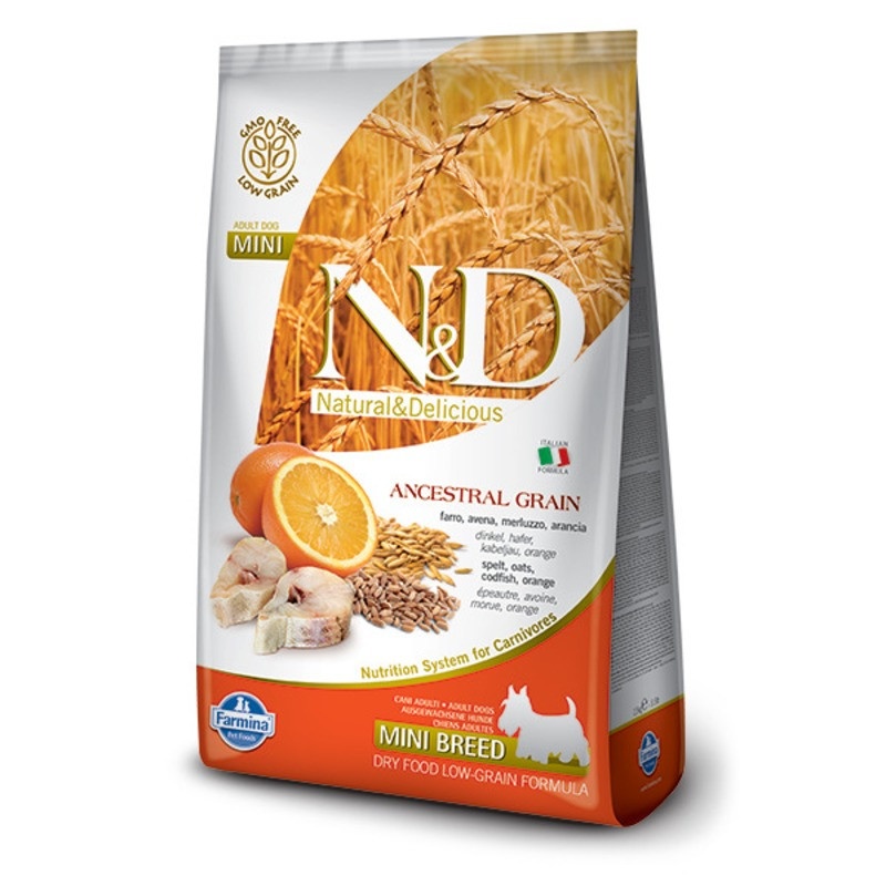 Farmina N&D сухой корм для взрослых собак мелких пород низкозерновой с треской и апельсином - 7 кг