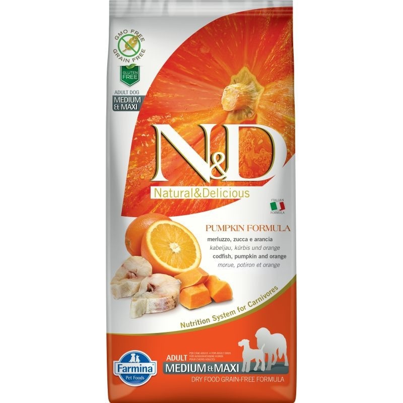 Farmina N&D Dog GF Pumpkin codfish & orange adult medium & maxi с треской, апельсином и тыквой для взрослых собак средних и крупных пород - 12 кг