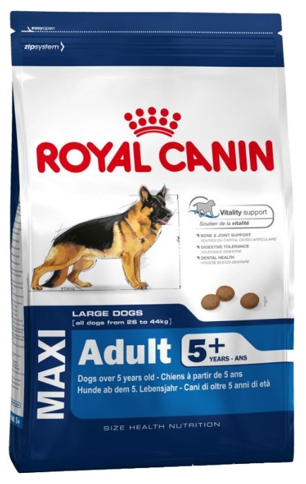 Полнорационный сухой корм для взрослых собак крупных размеров (вес собаки от 26 до 44 кг) в возрасте от 5 до 8 лет.