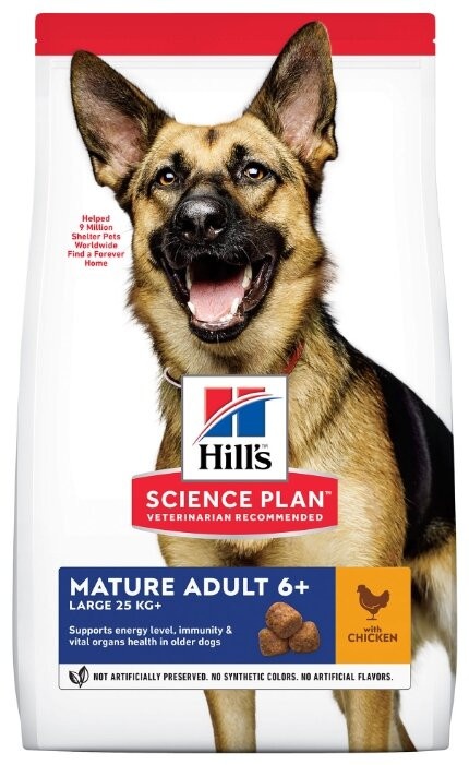 С Курицей: Кукуруза, пшеница, мука из мяса курицы (19%) и индейки (общего содержания мяса домашней птицы 27%), животный жир, гидролизат белка, соевая мука, мука из кукурузного глютена, мука из гороховых отрубей, семя льна, растительное масло, минералы, L-карнитин, размолотый рис, таурин, L-триптофан, витамины, микроэлементы, гидролизат хрящевой ткани (источник хондроитина сульфата), гидролизат панцирей ракообразных (источник глюкозамина) и бета-каротин. Содержит натуральный антиоксидант - смесь токоферолов.