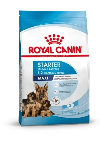 Основанная на данных профессиональных исследований, сухой корм Royal Canin Maxi Starter - это уникальное диетологическое решение, которое удовлетворяет потребности суки и ее щенков на пяти этапах жизненного цикла: беременность, рождение, лактация, отъем и рост до 2 месяцев. Продукт современной науки от Royal Canin, Start Complex – это эксклюзивная комбинация питательных веществ, имеющихся в молоке матери, усиленная дополнительными веществами, которые активно способствуют безопасности пищеварения и укрепляют естественный иммунитет щенков. Диетологическое решение, адаптированное к высоким потребностям суки в конце периода беременности и во время лактации. Диетологическое решение, которое облегчает перевод щенка с молока матери на твердый корм (энергетическая ценность, качество белка, жиры). Крокеты легко размачиваются до консистенции каши и обладают высокой вкусовой привлекательностью для суки и щенков в период отъема.