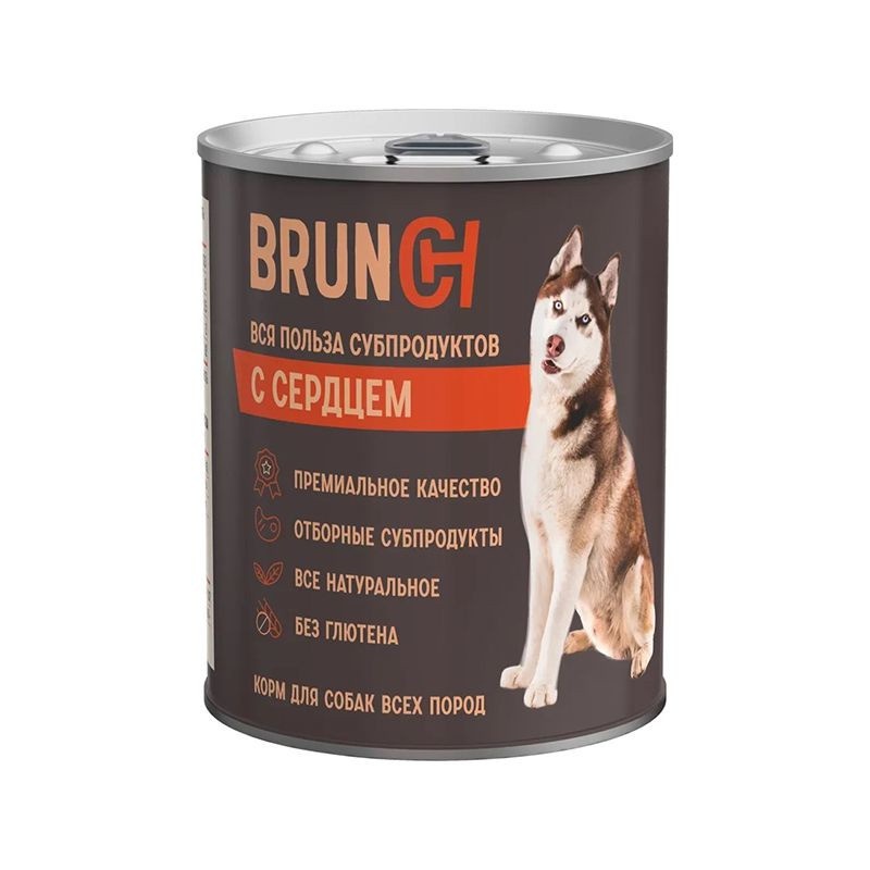Brunch влажный корм для взрослых собак с сердцем в консервах - 850 г