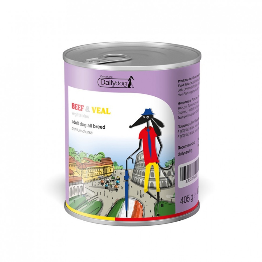 Dailydog casual Консервы для собак премиум кусочки говядины и телятины с овощами - 405гр