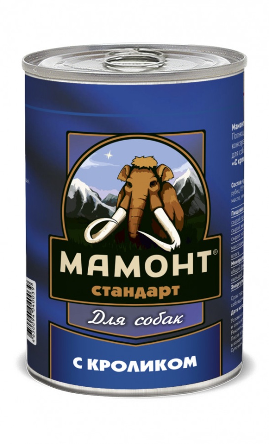 Состав: кролик 30%, субпродукты говяжьи, злаки, желирующая добавка, растительное масло, соль, вода.