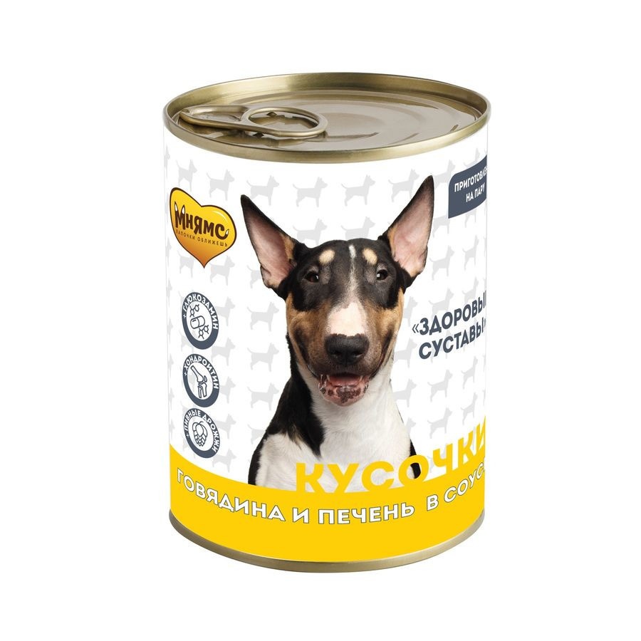 Мнямс кусочки в соусе для собак всех пород с говядиной и печенью "Здоровые Суставы" - 400 г