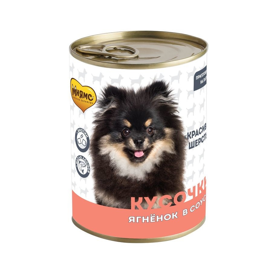 Мнямс кусочки в соусе для собак всех пород с ягненком "Красивая Шерсть" - 400 г