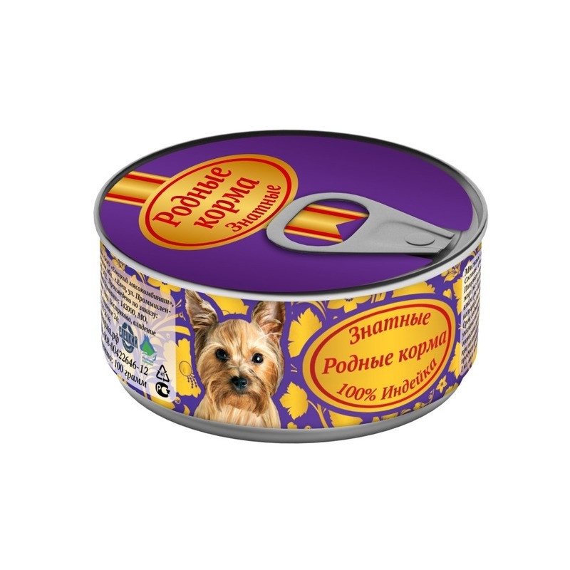 Влажный корм для собак в консервах Родные Корма Знатные Индейка в банке 100 гр х 24 шт Ингредиенты: Пищевая ценность: Энергетическая ценность: 121 кКал
