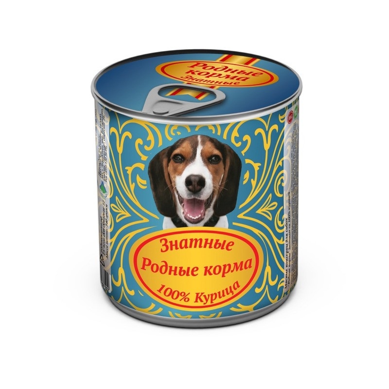 Влажный корм для собак в консервах Родные Корма Знатные Курица в банке 340 гр х 12 шт Ингредиенты: Пищевая ценность: Энергетическая ценность: 135 кКал
