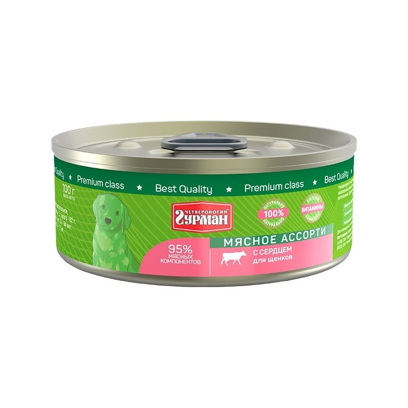 Четвероногий Гурман Мясное ассорти с сердцем для щенков 100 г