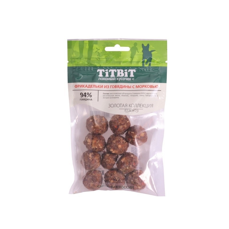TiTBiT Фрикадельки из говядины с морковью для собак, золотая коллекция - 70 г