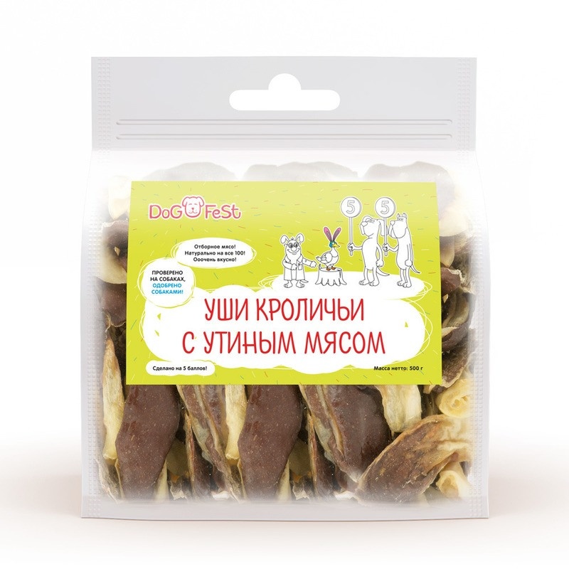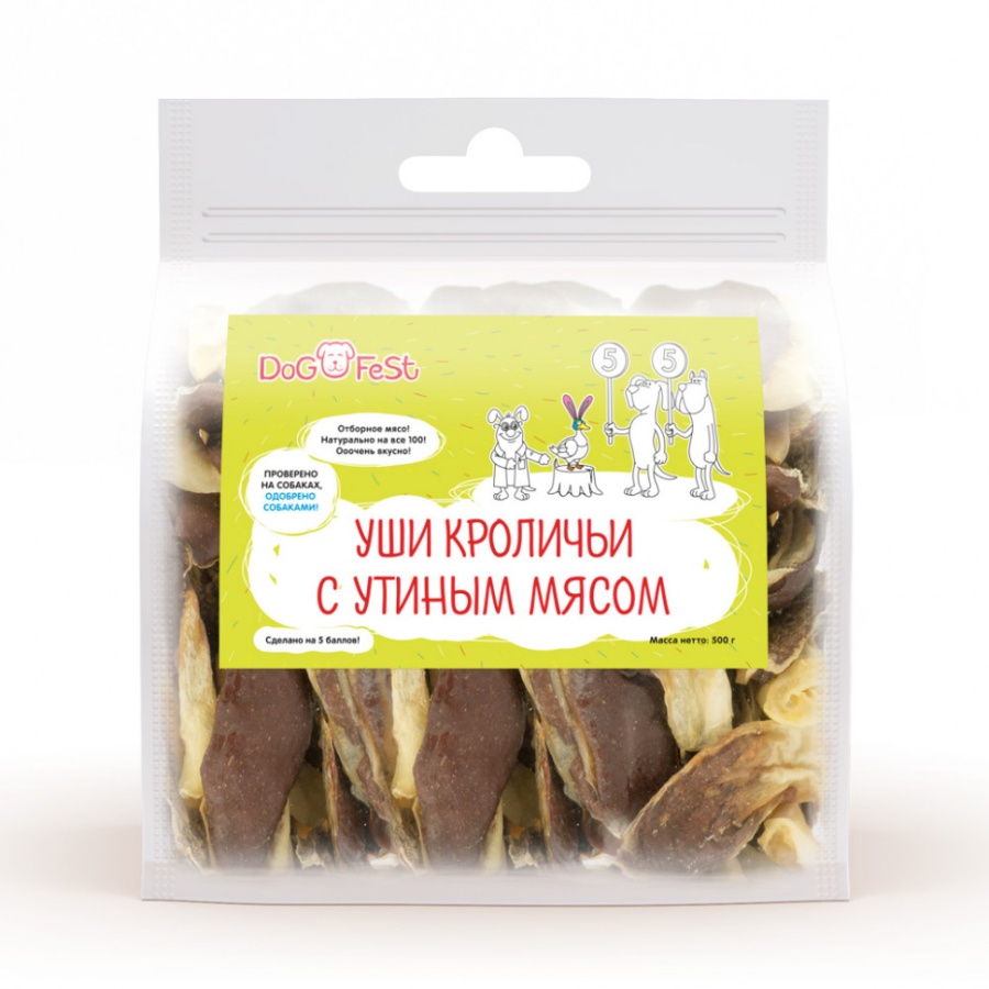 Dog Fest Уши кроличьи с утиным мясом для собак 500 г
