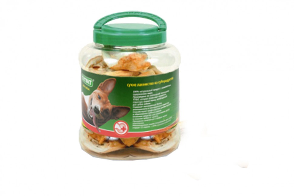 Titbit ухо говяжье внутр. - банка пласт. 4.3 л. Высокое содержание коллагеновых и эластиновых волокон обеспечивает поступление в организм незаменимых компонентов для роста и поддержания качества хрящевой ткани суставов Вашего питомца. Высокое содержание коллагена и эластина способствует улучшению формирования ушного хряща для пород собак, стандартом которых предусмотрен вертикальный постав ушной раковины.