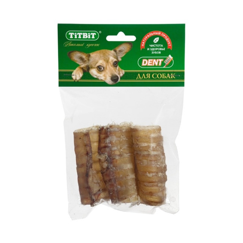 Titbit трахея говяжья резаная - мягкая упаковка. Низкокалорийное, богатое хрящевой и соединительной тканью лакомство.Улучшает состояние кожи и шерсти. Великолепно скрасит досуг собак преклонного возраста, а также собак с неполной зубной формулой.