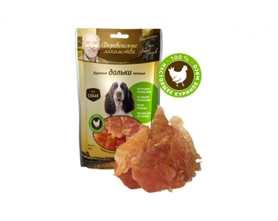 ДЕРЕВЕНСКИЕ ЛАКОМСТВА 100 % Мяса Куриные дольки нежные для собак 90 гр