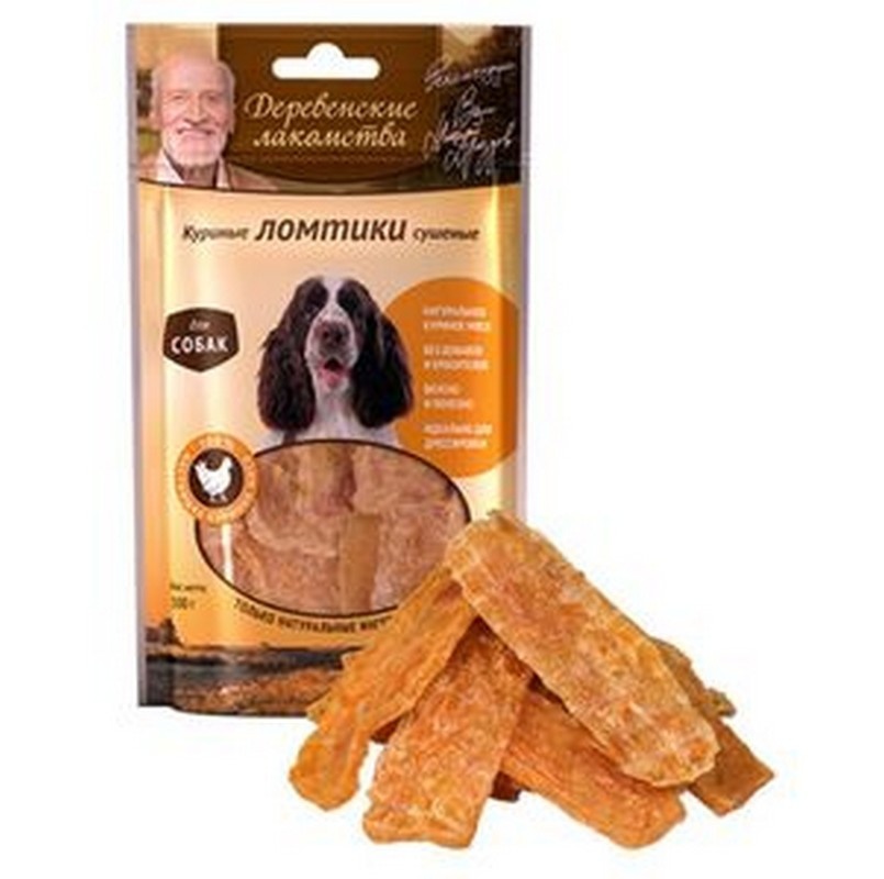 ДЕРЕВЕНСКИЕ ЛАКОМСТВА 100 % Мяса Куриные ломтики сушеные для собак 90 гр