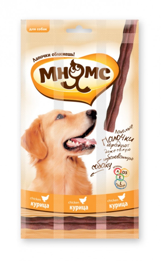 Лакомые палочки «Мнямс»- это вкусное и здоровое угощение для собак с большим содержанием мяса, которое придется по вкусу даже самому капризному любимцу.