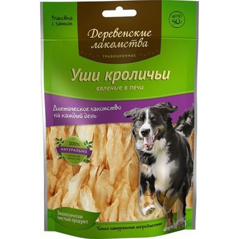 ДЕРЕВЕНСКИЕ ЛАКОМСТВА "Традиционные" Уши кроличьи вяленые в печи для собак 50 гр