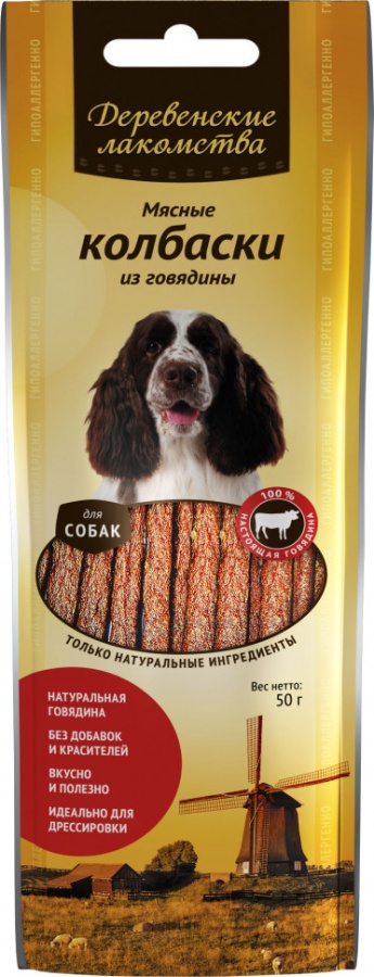 ДЕРЕВЕНСКИЕ ЛАКОМСТВА Мясные колбаски из говядины для собак 7 шт. 45 гр
