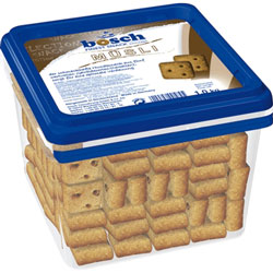 Следует помнить, что у каждой собаки вырабатывается особый вкус к лакомству, в зависимости от ее ежедневного рациона.лакомство это не просто еда. Собака прекрасно понимает, что это еще и знак вашего расположения. Лакомство Bosch Muesli это вкусное печенье, содержащее пять основных злаков, заботящихся о здоровом пищеварении собаки.