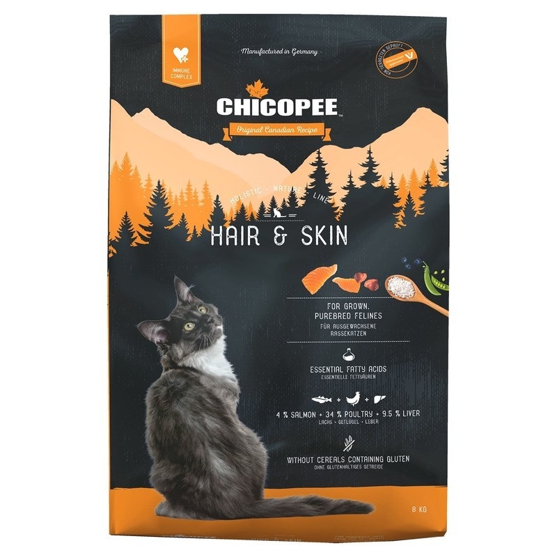 Chicopee HNL Cat Hair & Skin сухой корм для кошек для кожи и шерсти - 8 кг