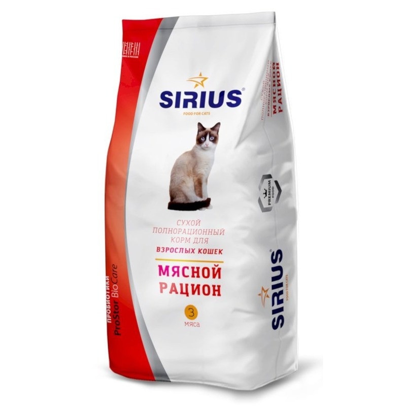 Sirius Сухой корм для взрослых кошек мясной рацион