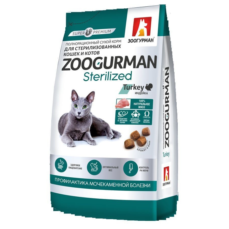 Зоогурман сухой корм для взрослых кошек с индейкой - 1,5 кг