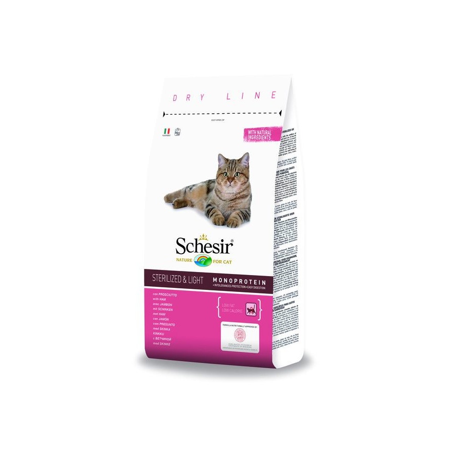 Повседневный сухой корм с ветчиной Schesir Sterilized And Light Облегченный сухой корм для взрослых стерилизованных кошек и кастрированных котов