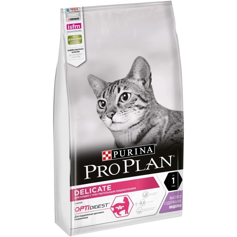 Пищевая чувствительность может привести к расстройствам пищеварения, раздражению кожи или потере аппетита. Специальный рацион Pro Plan® Delicate – сбалансированный корм для кошек, который сочетает все основные питательные вещества, включая витамины и минералы и способствует поддержанию здоровья пищеварительной системы благодаря содержанию пребиотиков. В линейке кормов Pro Plan® Delicate используются отборные источники белка, что помогает повысить пищевую толерантность и снижает вероятность аллергической реакции на пищу у кошек любого возраста.