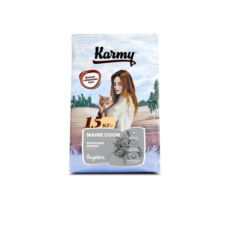 Сухой корм Karmy Maine Coon для взрослых кошек породы мейн кун с индейкой 1.5 кг