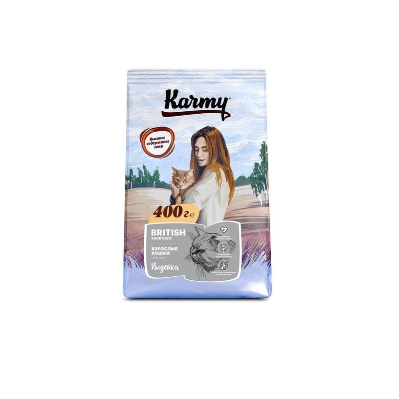 Сухой корм Karmy British shorthair для взрослых кошек породы британская короткошерстная с индейкой 400 г