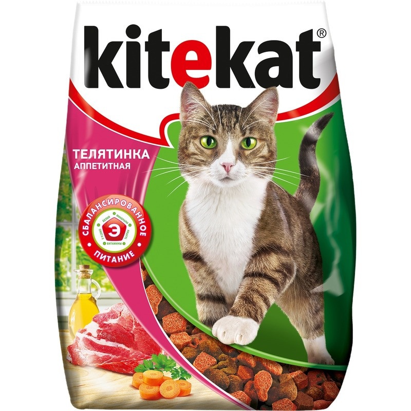 Kitekat сухой корм для взрослых кошек с аппетитной телятинкой - 350 г