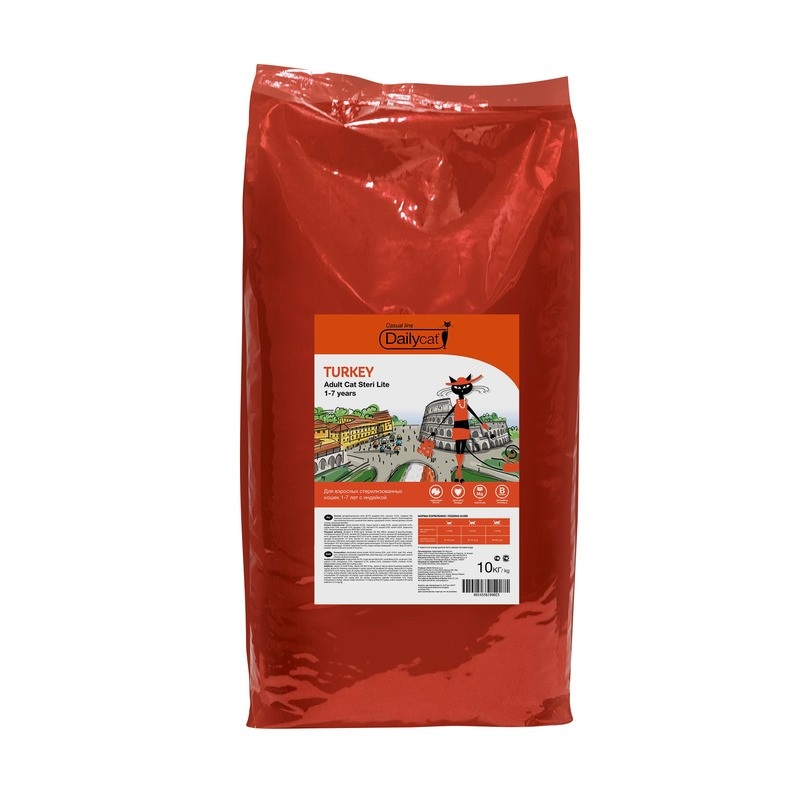 Dailycat Casual Line Adult Steri Lite Turkey корм для стерилизованных кошек с индейкой 10 кг