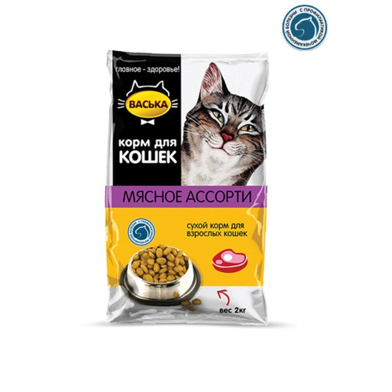 Васька сухой корм для кошек для профилактики МКБ мясное ассорти - 2 кг