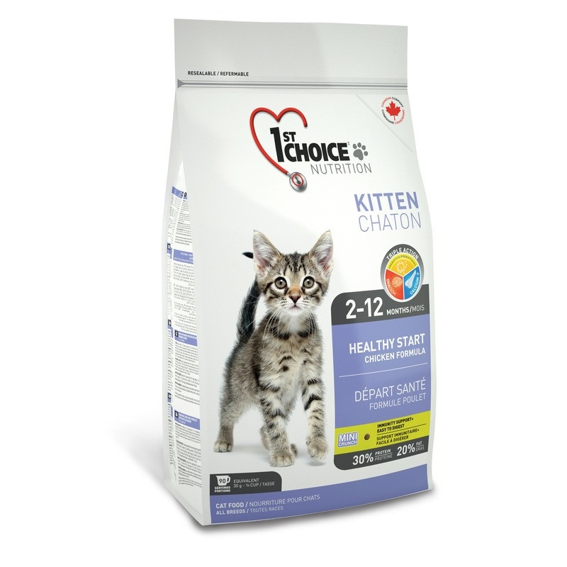 1st Choice Здоровый старт - идеальная формула для начального прикорма котенка с 2 месяцев, когда он нуждается в новых источниках питания вместо материнского молока.